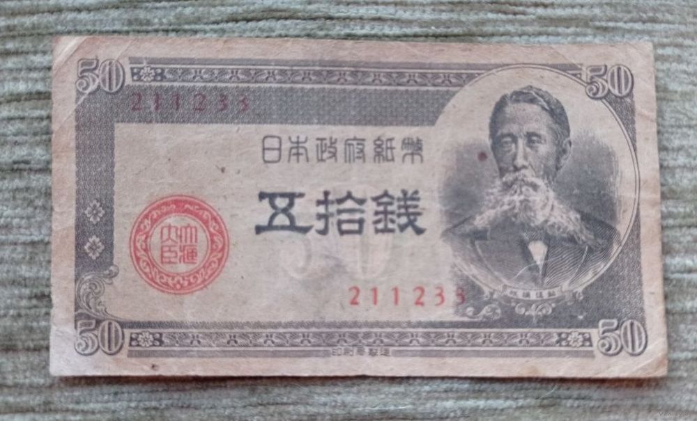 Werty71 Япония 50 сен 1948 Итагаки Тайсукэ Здание парламента Банкнота