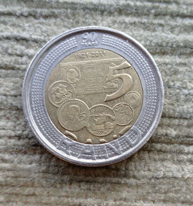 Werty71 ЮАР Южная Африка 5 рандов 2011 90 лет Южноафриканскому Резервному Банку рэндов ранд рэнд биметалл