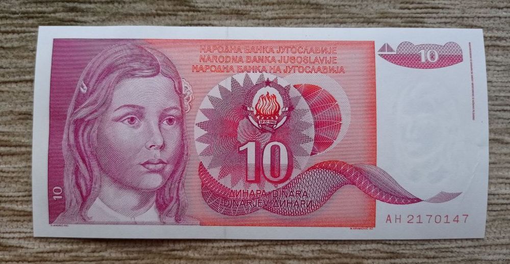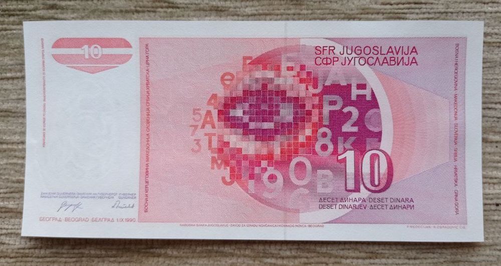 Werty71 Югославия 10 Динар 1990 UNC банкнота