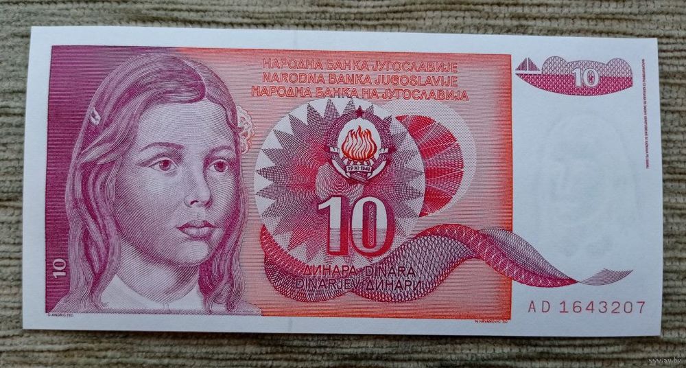 Werty71 Югославия 10 Динар 1990 UNC банкнота
