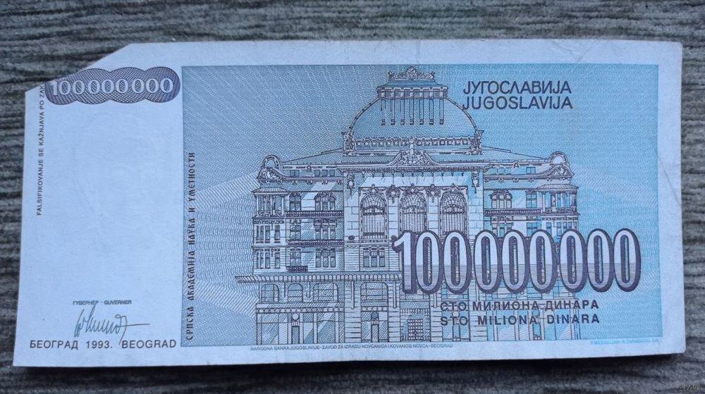 Werty71 Югославия 100 миллионов 100000000 динаров 1993 банкнота 1 2