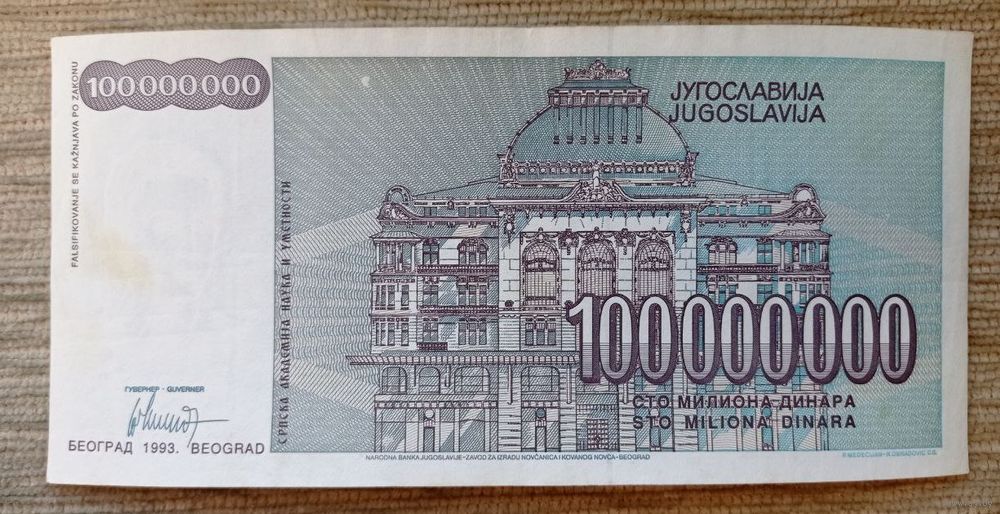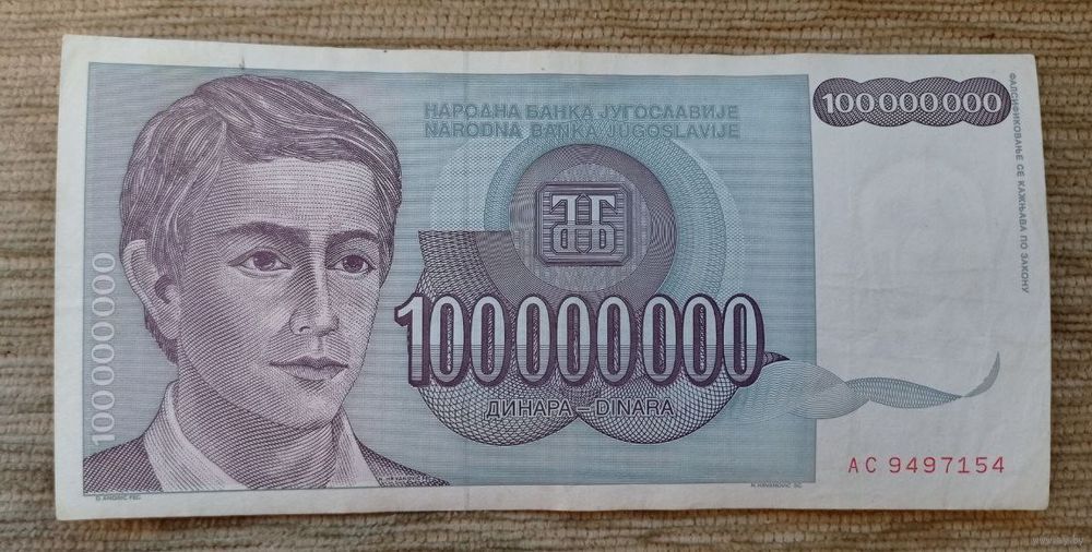 Werty71 Югославия 100 миллионов 100000000 динаров 1993 банкнота 100 000 000