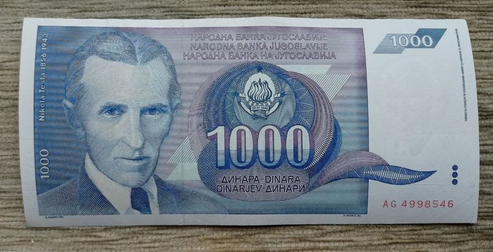 Werty71 Югославия 1000 динар 1991 банкнота