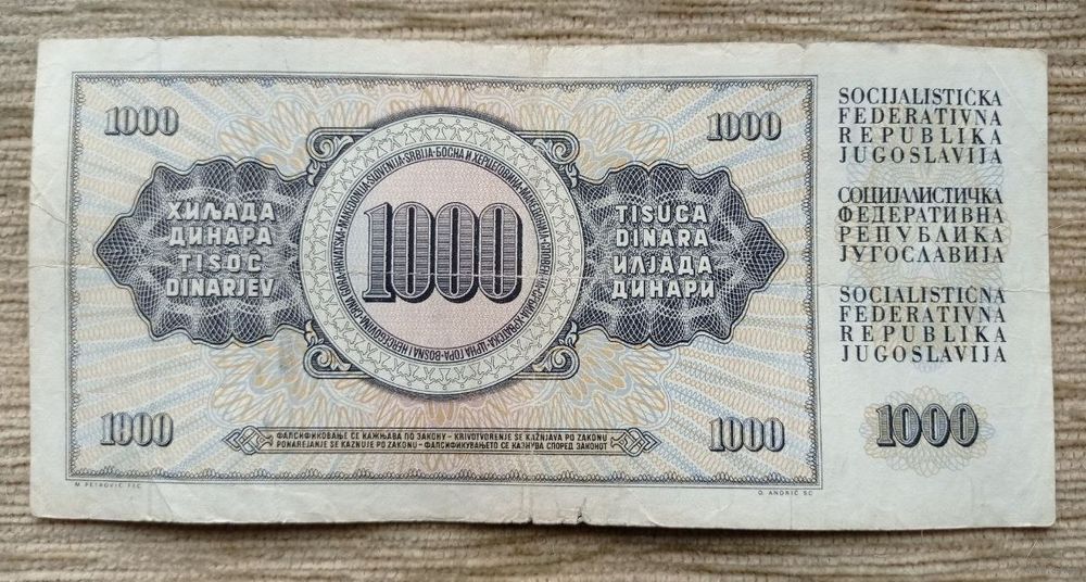 Werty71 Югославия 1000 динаров 1981 банкнота