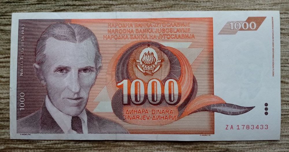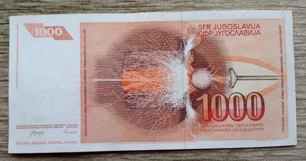 Werty71 Югославия 1000 динаров 1990 банкнота