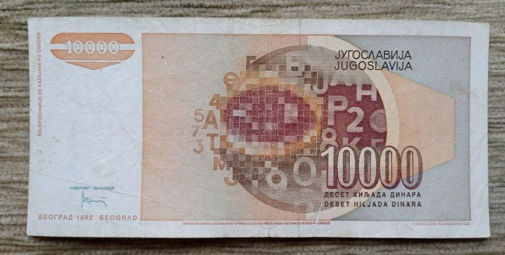 Werty71 Югославия 10000 Динаров 1992 банкнота 1 2