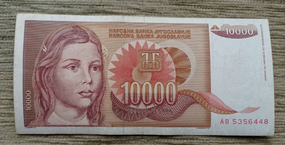 Werty71 Югославия 10000 Динаров 1992 банкнота