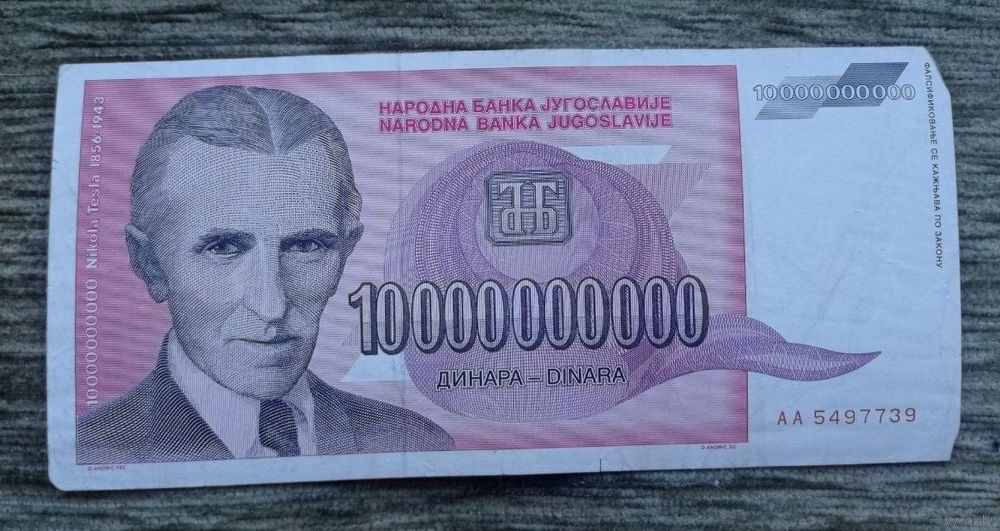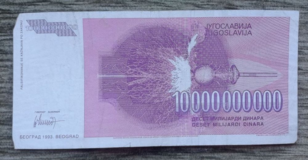 Werty71 Югославия 10000000000 динаров 1993 10 миллиардов банкнота 10 000 000 000