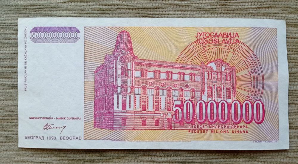 Werty71 Югославия 50 Миллионов Динаров 1993 банкнота 50000000 50 000 000