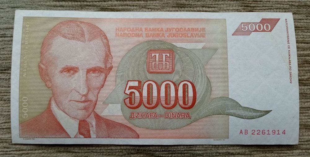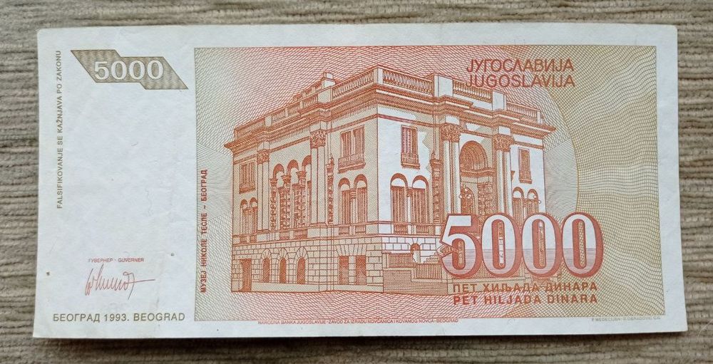 Werty71 Югославия 5000 динар 1993 банкнота