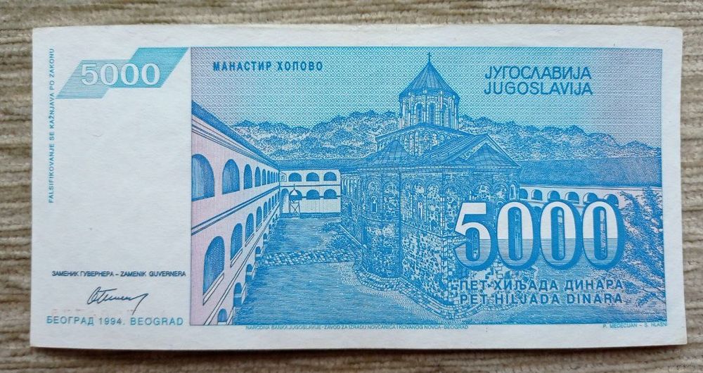 Werty71 Югославия 5000 динаров 1994 банкнота