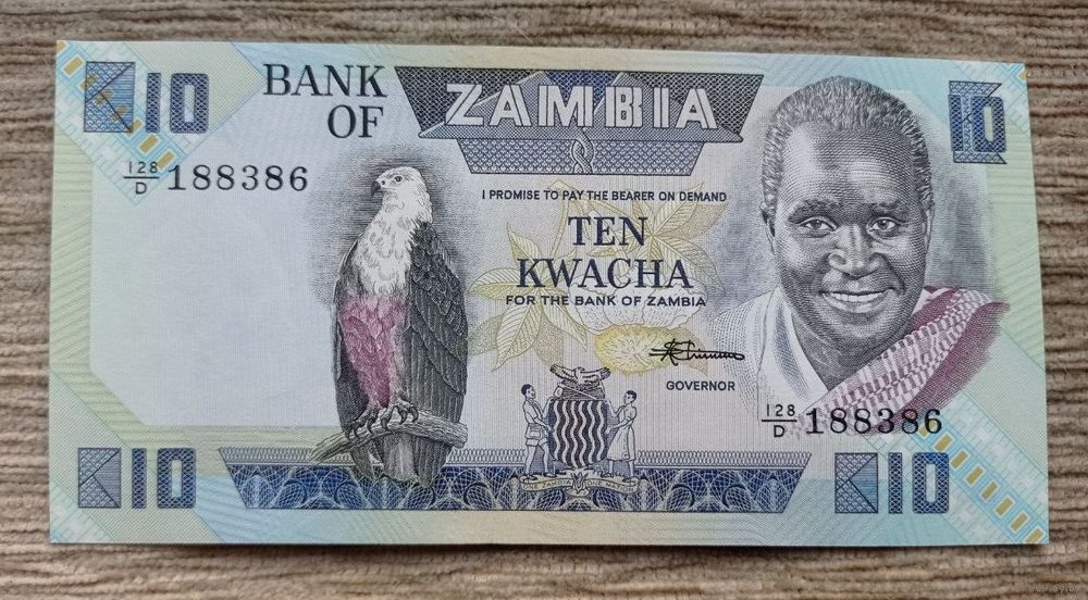 Werty71 Замбия 10 квача 1980 - 1988 UNC банкнота