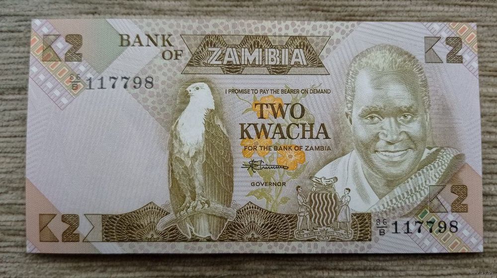 Werty71 Замбия 2 квача 1980 1988 UNC банкнота