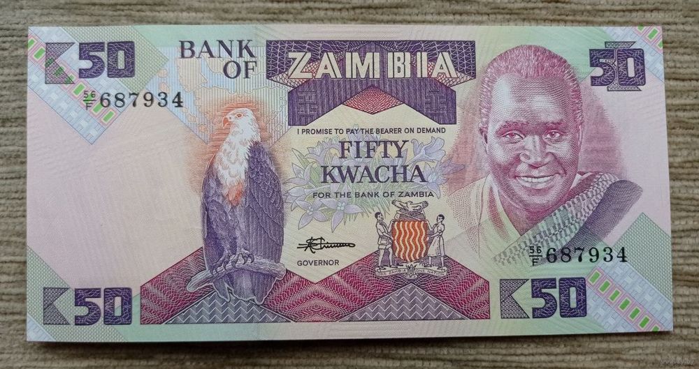 Werty71 Замбия 50 квача 1986 1988 UNC банкнота