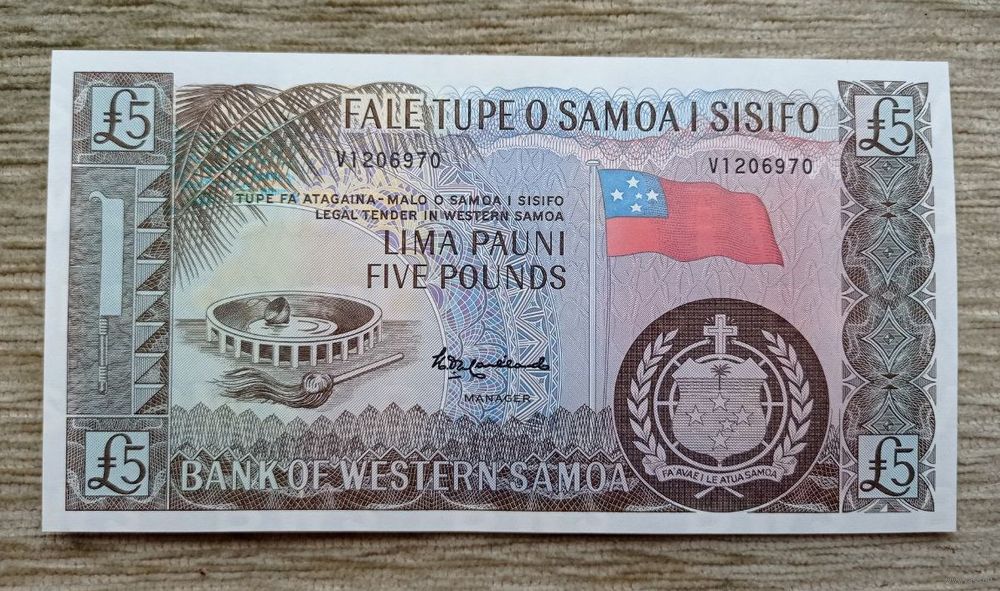Werty71 Западное Самоа 5 фунтов тала 1963 2020 UNC банкнота официальный репринт большой формат