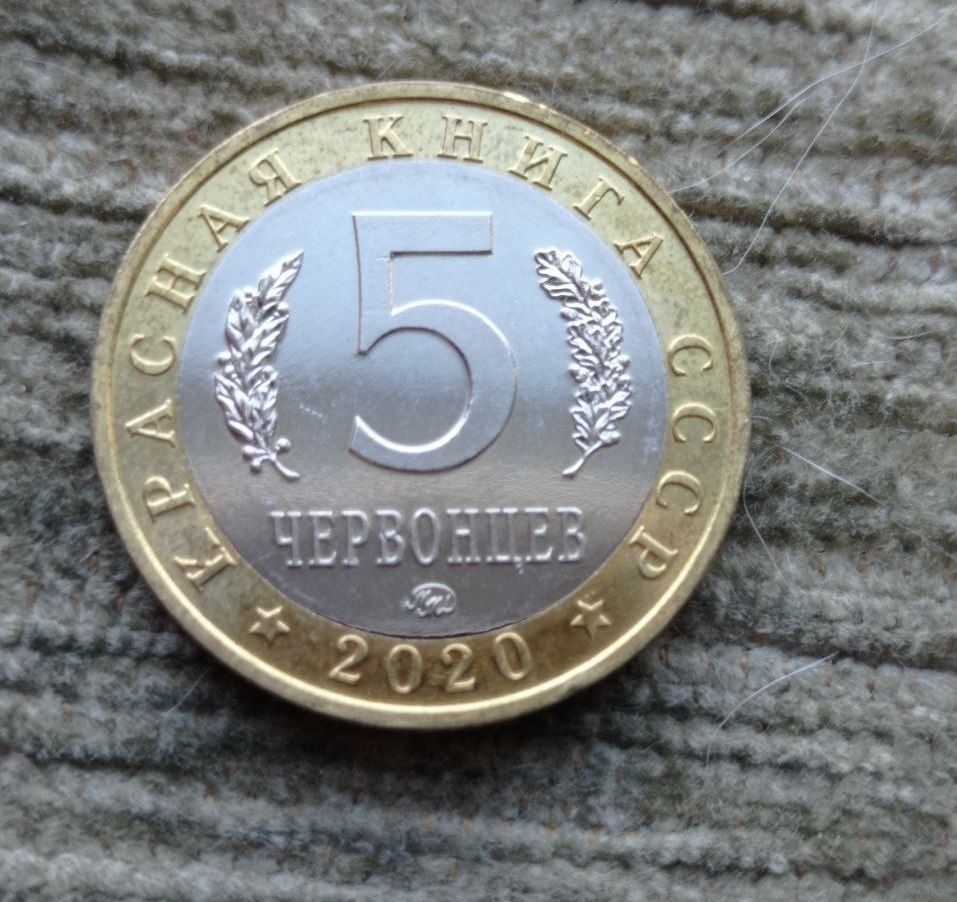 Werty71 Жетон ММД 5 червонцев 2020 Красная книга СССР Рыба биметалл Подкаменщик обыкновенный