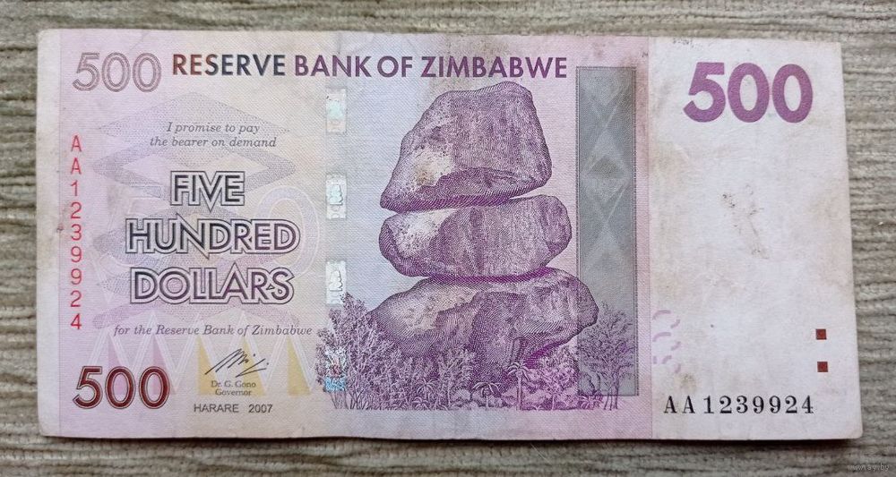 Werty71 Зимбабве 500 Долларов 2007 банкнота