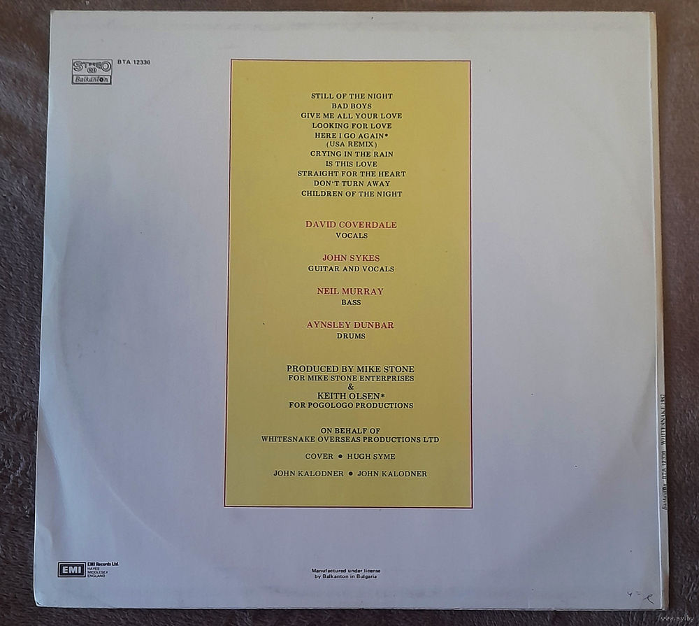 Music By – David Coverdale, John Sykes (треков: A1 to A5, B2 to B5)