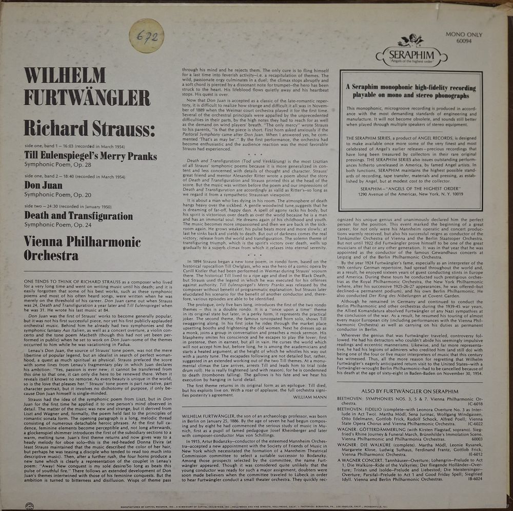 Wilhelm Furtwangler, Wiener Philharmoniker / Richard Strauss – Till Eulenspiegels Lustige Streiche Op. 28 / Don Juan Op. 20 / Tod Und Verklarung Op. 24