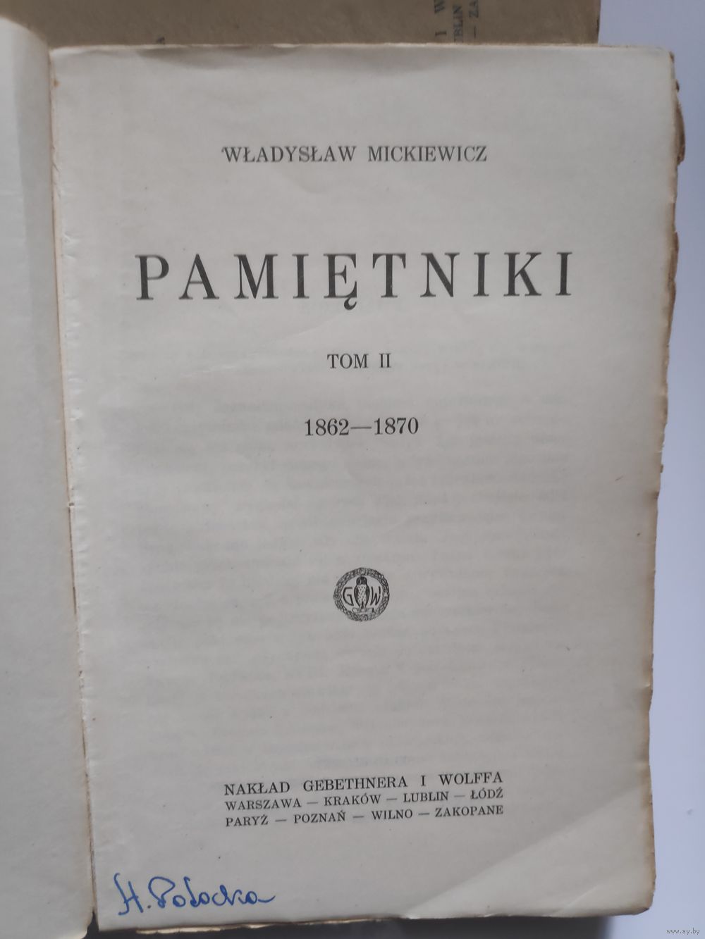 MICKIEWICZ Władysław: Pamiętniki. Tom I: 1838-1861, Tom II: 1862-1870.- Warszawa, 1926-27.- 454, 440 s.
