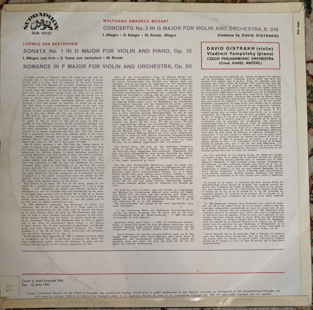 Wolfgang Amadeus Mozart, Ludwig van Beethoven, David Oistrach – Concerto No. 3 In G Major For Violin And Orchestra K. 216, Sonata No. 1 In D Major For Violin And Piano, Op. 12, Romance No. 2 In F Major For Violin And Orchestra Op. 50