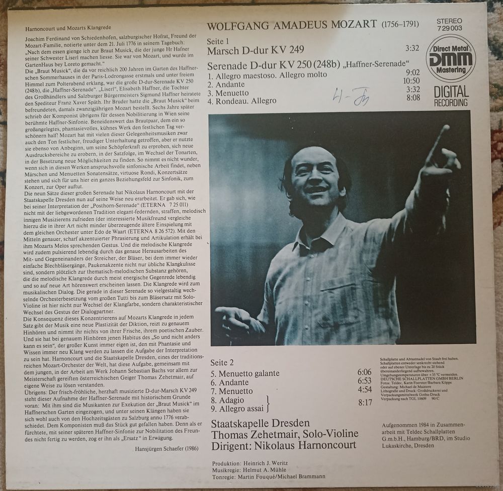 Wolfgang Amadeus Mozart - Staatskapelle Dresden Dirigent: Nikolaus Harnoncourt – Harnoncourt Dirigiert Mozart: Haffner Serenade KV 250