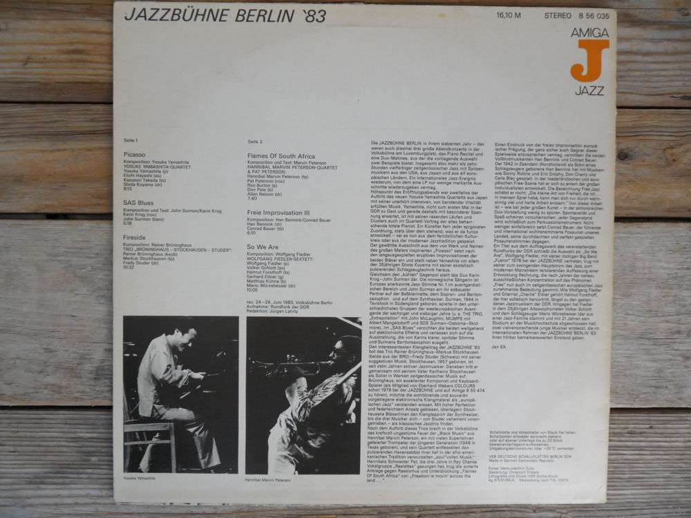 Y. Yamashita, K. Krog, J. Surman, Trio Bruninghaus-Stockhausen-Studer, H. Marvin Peterson Quartet, W. Fiedler Sextett u.a. - Jazzbuhne Berlin '83 - Amiga, ГДР
