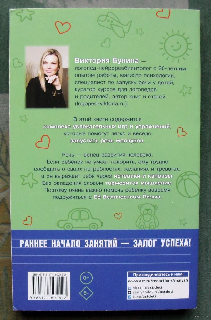 Эта книга – настоящая палочка-выручалочка для родителей молчунов и специалистов, работающих с такими детьми! В ней содержится комплекс увлекательных игр и упражнений, которые помогут легко и весело запустить речь малыша. Автор книги Виктория Бунина – логопед-нейрореабилитолог с 20-летним опытом работы, магистр психологии, специалист по запуску речи у детей, куратор курсов для логопедов и родителей, автор книг и статей. Уже более 10 тыс. родителей услышали первые слова своих детей после занятий по методике В. Буниной.