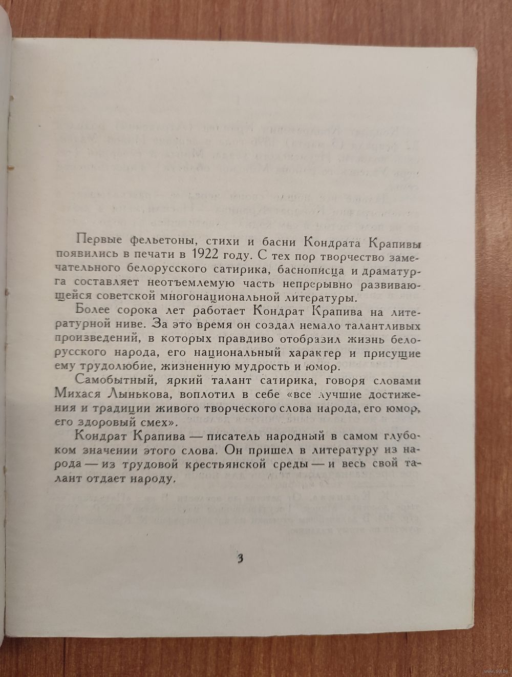 Впервые на русском языке выходит книга, посвященная жизни и творчеству замечательного белорусского поэта-сатирика и драматурга Кондрата Крапивы. Автор книги – известный белорусский критик Янка Казека – показывает особенности сатирической поэзии Крапивы, ее подлинную народность. Наиболее подробно и основательно рассматривает автор басенное творчество К. Крапивы, характеризует вклад белорусского сатирика в развитие советской басенной традиции. Точное и живое представление дает автор о лучших, широко известных пьесах Крапивы: "Партизаны", "Конец дружбы", "Кто смеется последним", "Поют жаворонки", "С народом". Богатый и многокрасочный мир образов возникает перед читателем книги.