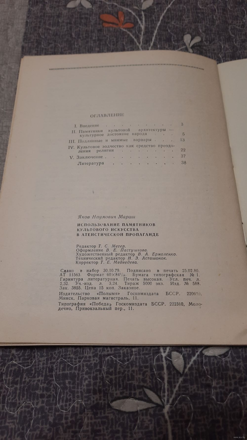 Я.Н.Мараш Использование памятников культового искусства в атеистической пропаганде, Минск 1980г.