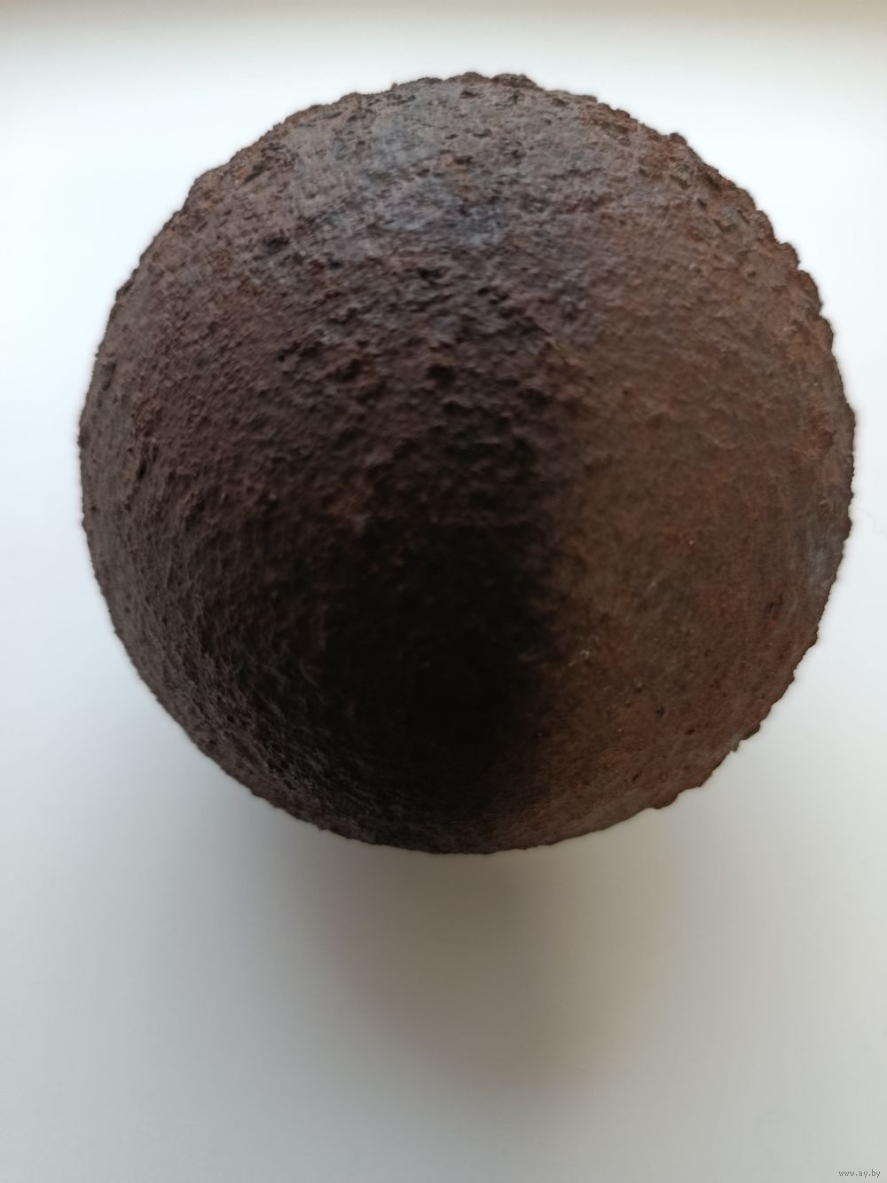 Старинный артиллерийский снаряд. Цельно литой, вес 2 кг 850г, диаметр 9см. Никаких реставрационных работ не проводилось. Оригинал.