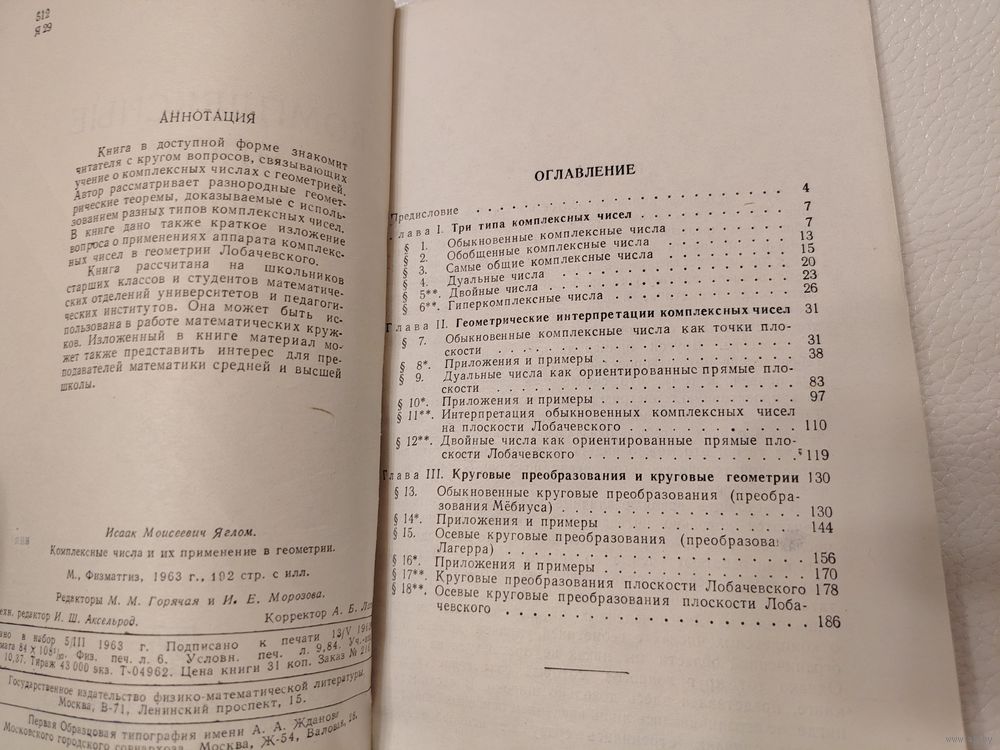 Настоящее издание в доступной форме знакомит читателя с кругом вопросов, связывающих учение о комплексных числах с геометрией. Автор рассматривает разнородные геометрические теоремы, доказываемые с использованием разных типов комплексных чисел. Дается также краткое изложение вопроса о применениях аппарата комплексных чисел в геометрии Лобачевского. Книга рассчитана на школьников старших классов и студентов математических отделений университетов и педагогических институтов. Она может быть использована в работе математических кружков. Изложенный в книге материал может также представить интерес для преподавателей математики средней и высшей школы.