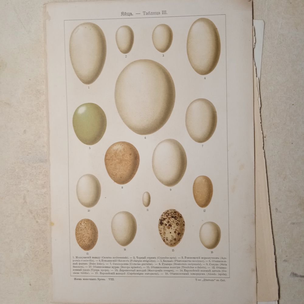 ЯЙЦА --таб.3. нач. 20в. 25+17см. хромогравюра 19 в. Спб. РАСПРОДАЖА КОЛЛЕКЦИИ.