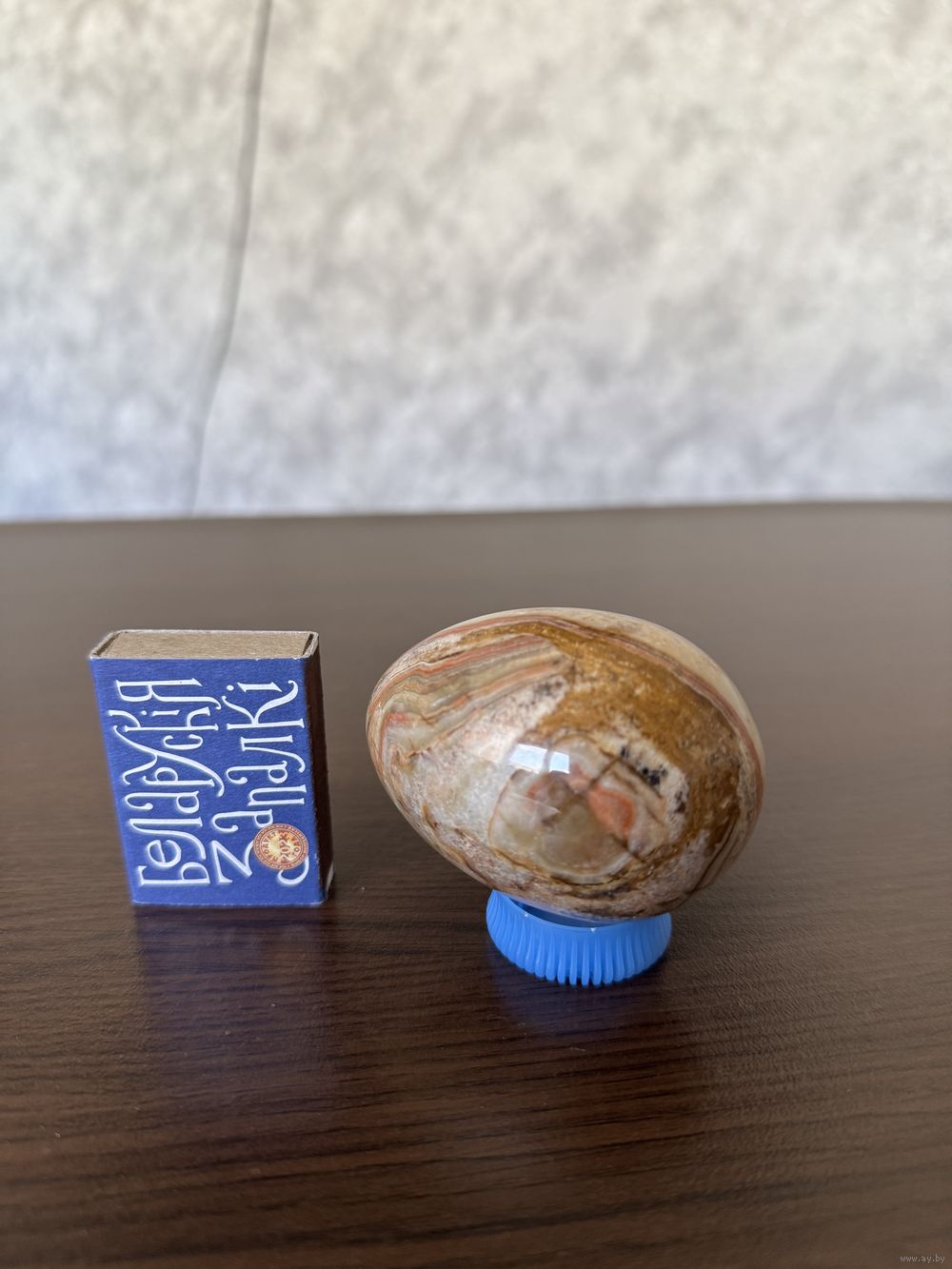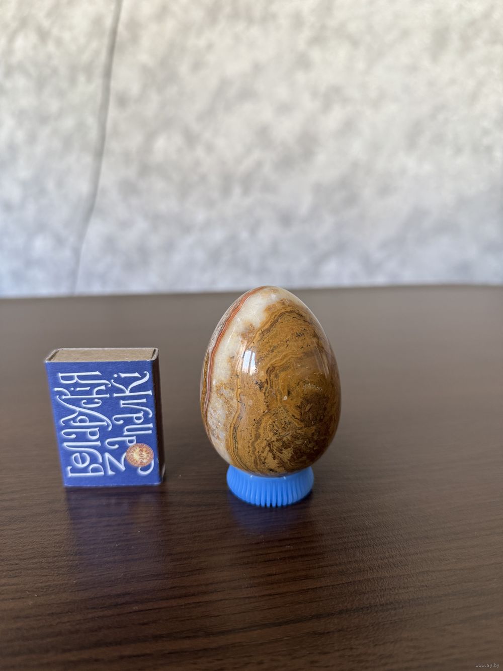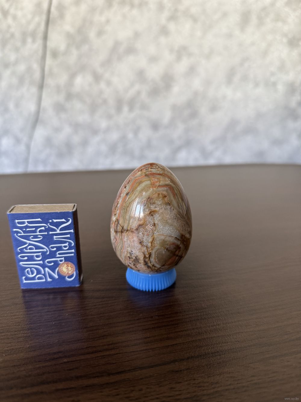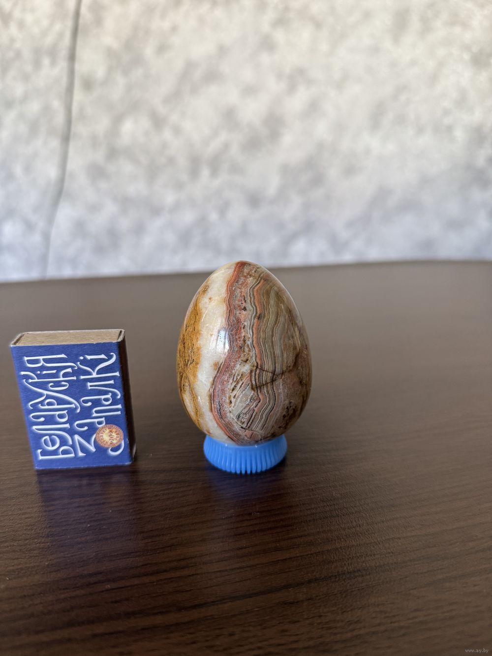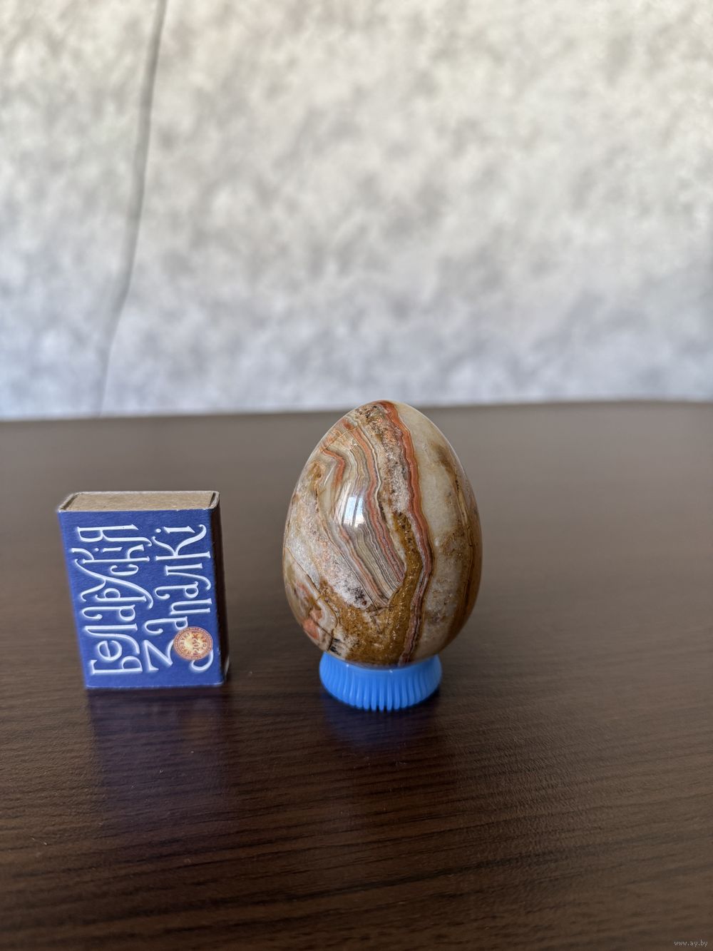 Пасхальный сувенир — яйцо из натурального оникса. Размер: высота 7 см, диаметр 5 см. Эксклюзивная альтернатива обычному яйцу. Не бьется, переливается природными узорами. Идеально для пополнения коллекции минералов.