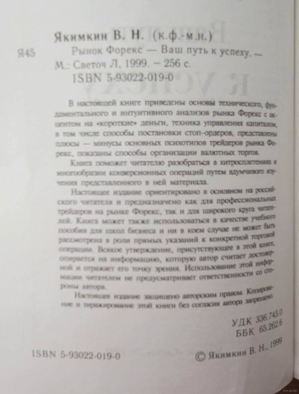 Якимкин В.Н. Рынок Форекс - Ваш путь к успеху 5-93022-019-0 / 5930220190 Светоч Л