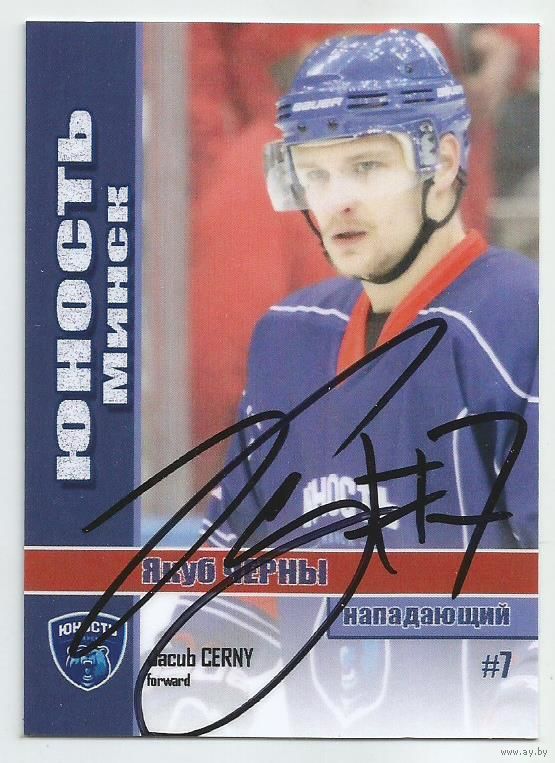 Якуб Черны / ХК "Юность" Минск / Карточка с живым автографом/ Сезон 2014-2015гг.