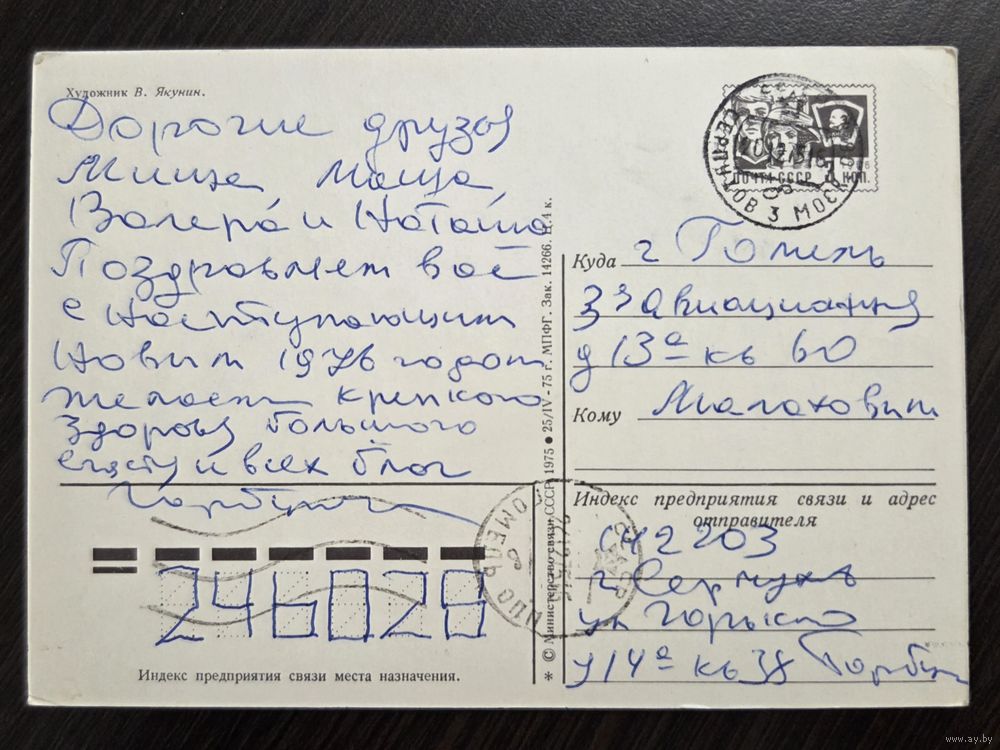 Якунин С Новым годом 1975 подписанная открытка СССР