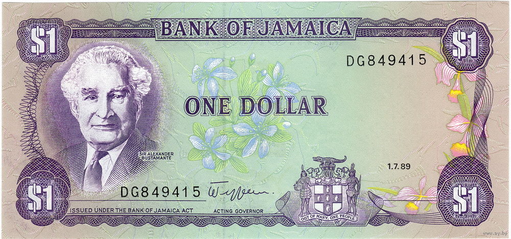 Ямайка, 1 доллар, 1989 г., P-68Ac, UNC