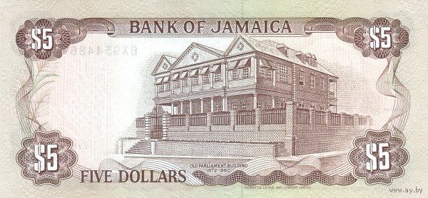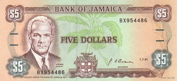 Ямайка 5 долларов образца 1991 года UNC p70d серия ВХ