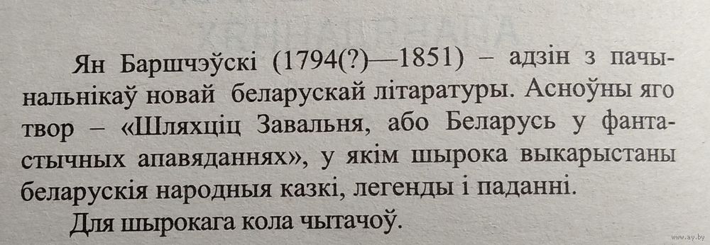 Ян Баршчэўскі. Шляхціц Завальня, або Беларусь у фантастычных апавяданнях. (Мая беларуская кніга) Мінск : Попурри, 2015 г. 349 с. Мяккая вокладка. Паменш.фармат