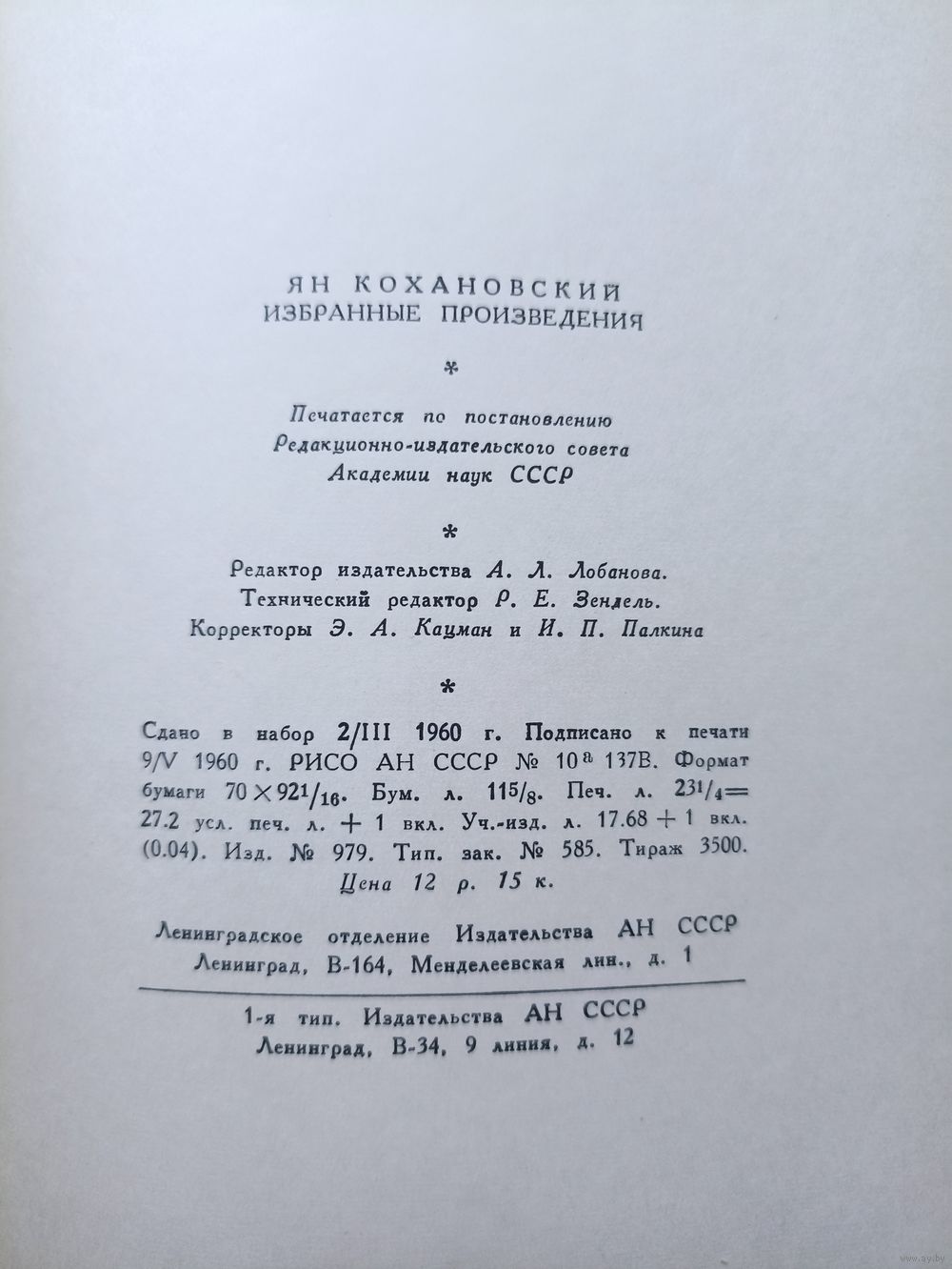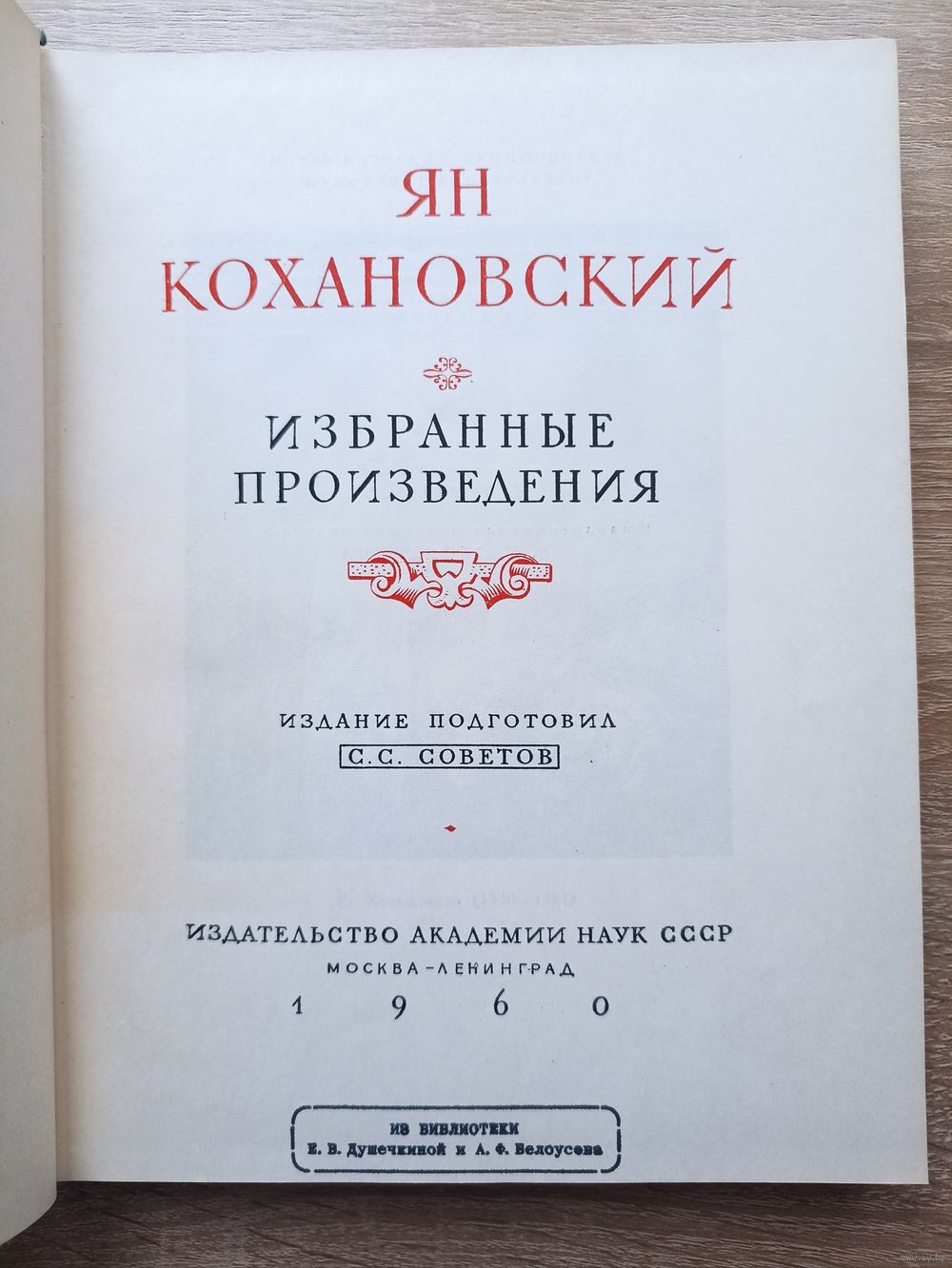 Ян Кохановский. Избранные произведения (серия: "Литературные памятники", тираж 3500 экз.) // возможен обмен на другие книги данной серии