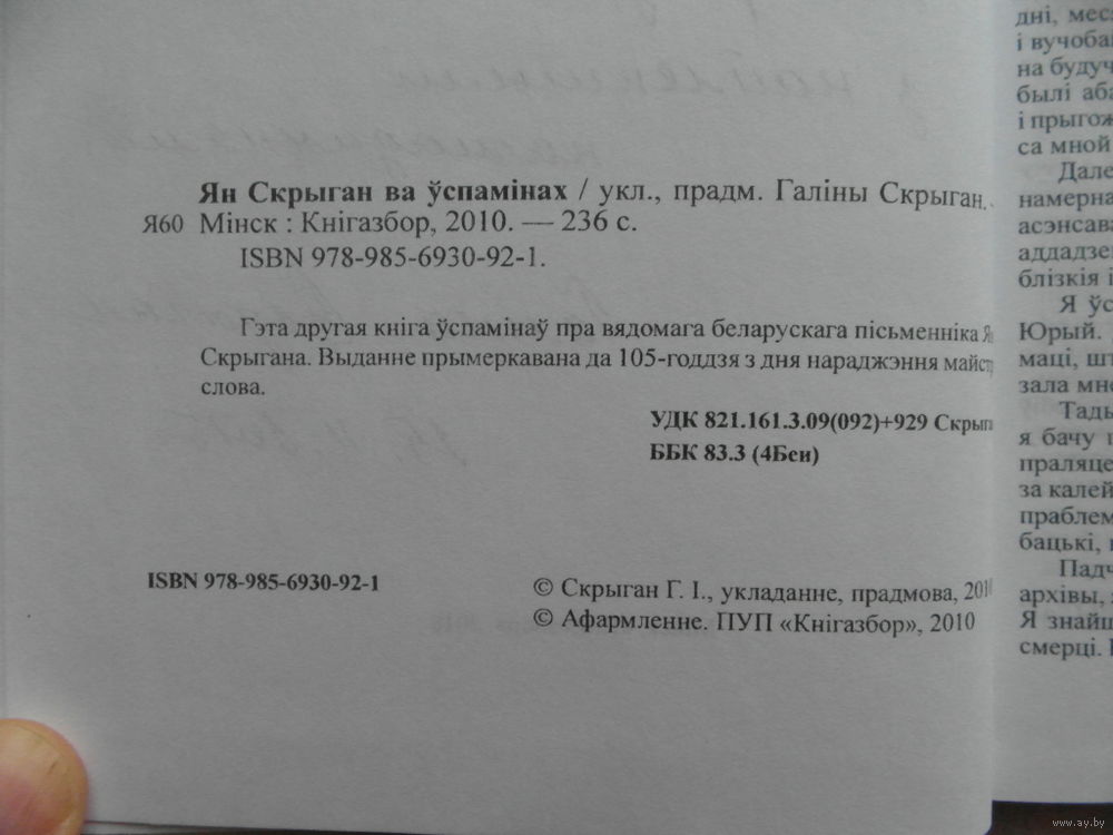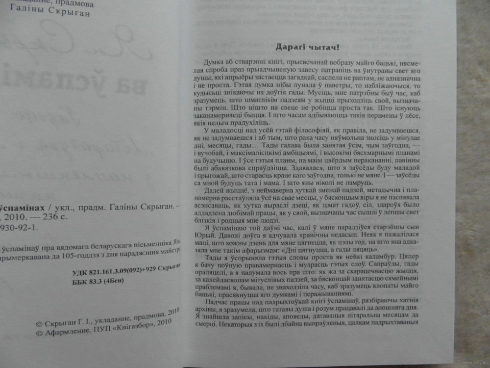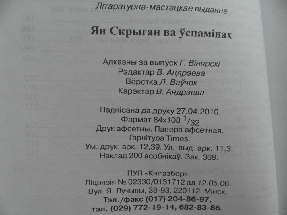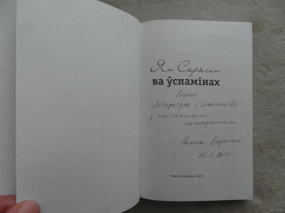 Ян Скрыган. Ва ўспамінах. Да 105-годдзя з дня нараджэння. Мінск. Кнігазбор. 2010 г. Наклад 200 ас. Автограф и дарственная дочери.