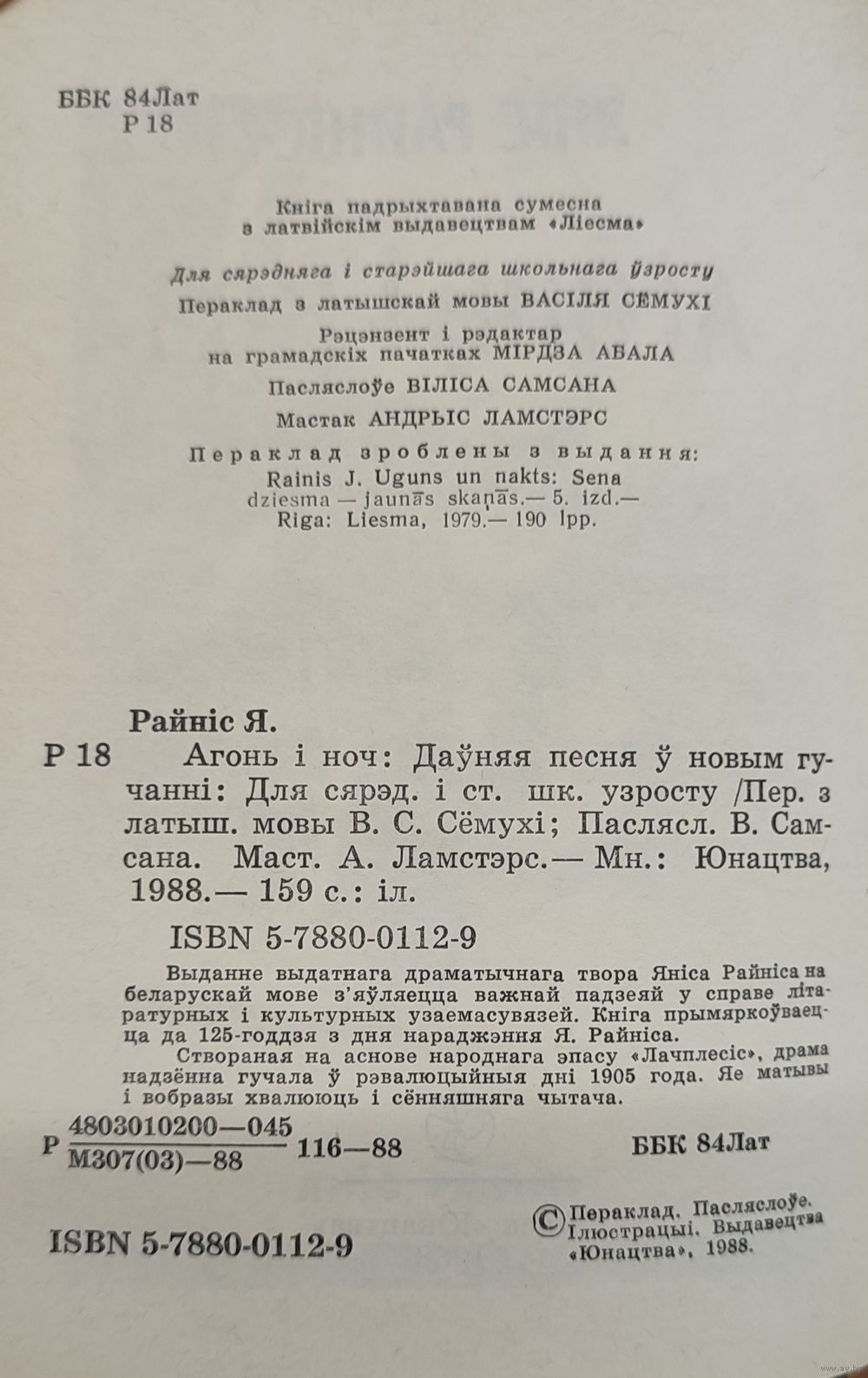 Выданне выдатнага драматычнага твора Яніса Райніса на беларускай мове з'яўляецца важнай падзеяй у справе літаратурных і культурных узаемасувязей. Кніга прымяркоўваецца да 125-годдзя з дня нараджэння Я. Райніса.