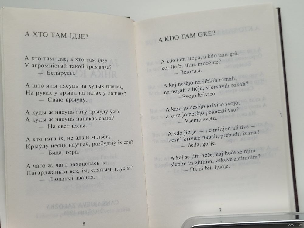 Золотое тиснение. На беларусском, словенском, русском и английском языках. Перевод на русский - М. Горький, М. Исаковский. Тираж 1000 экз.