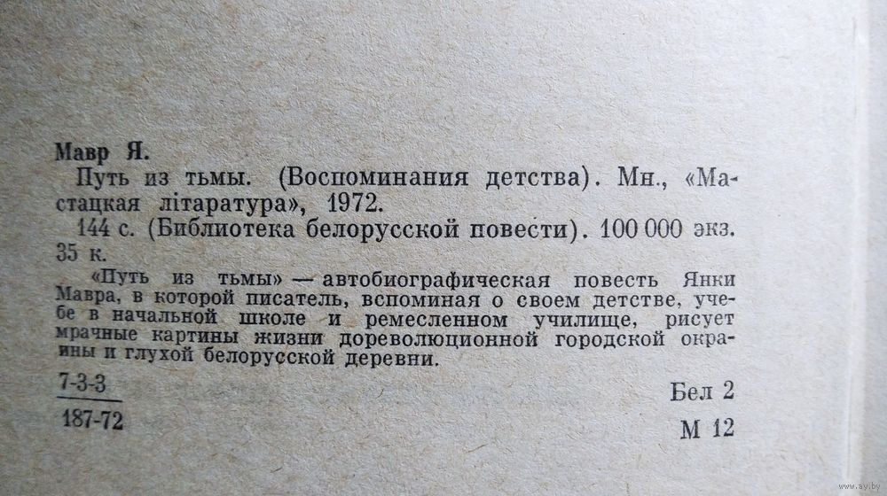 Путь из тьмы — автобиографическая повесть Янки Мавра, в которой писатель, вспоминая о своем детстве, учебе в начальной школе и ремесленном училище, рисует мрачные картины жизни дореволюционной городской окраины и глухой белорусской деревни.