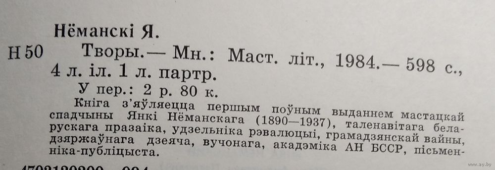 Янка Нёманскі. Творы. Мінск : Мастацкая літаратура, 1984 г. 597 с. Цверды пераплет.