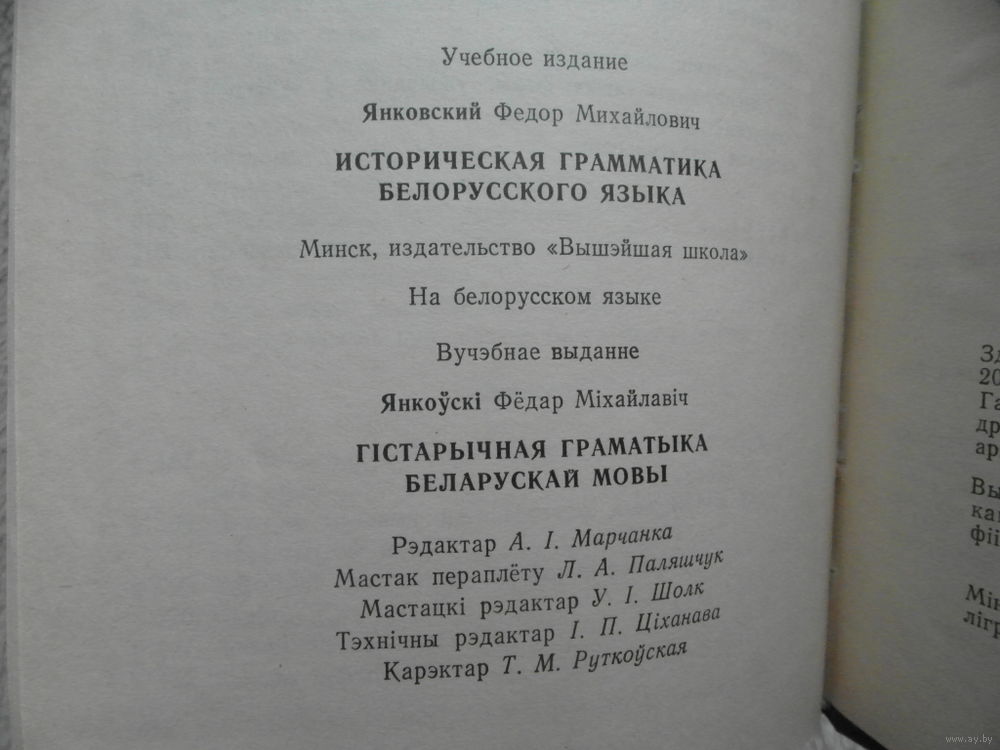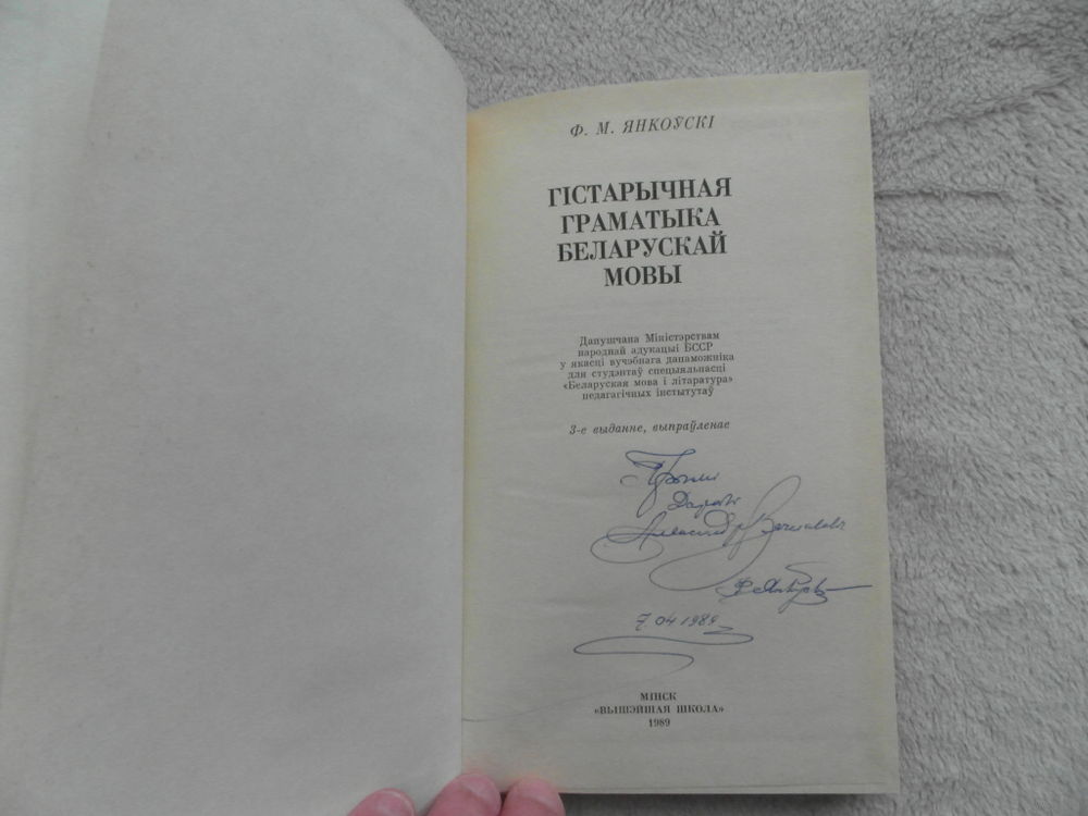Янкоускi Ф. Гістарычная граматыка беларускай мовы. Мiнск. Вышэйшая школа. 1989 г. Дарственная и автограф автора.