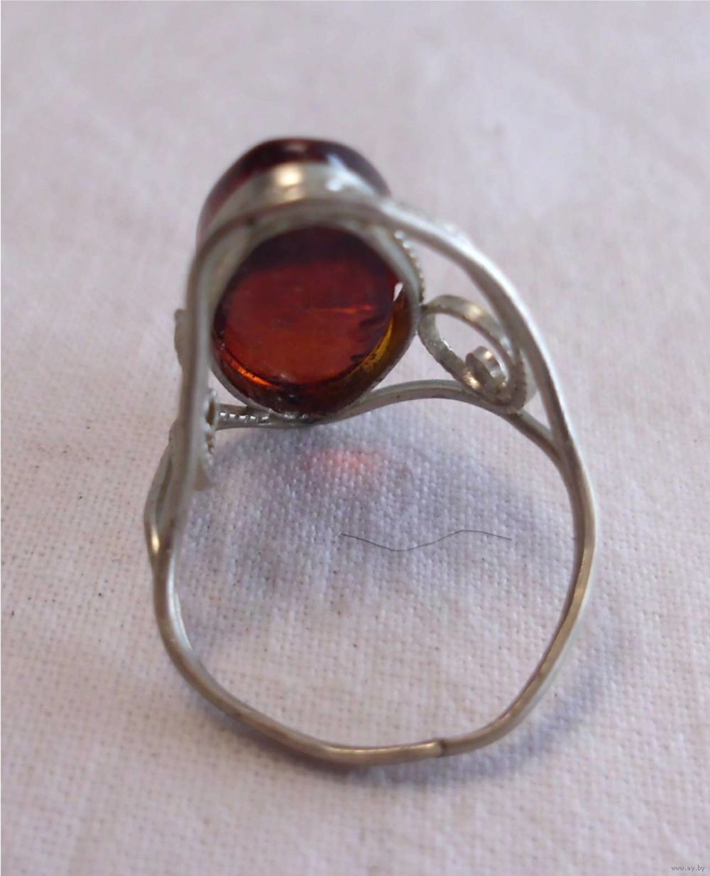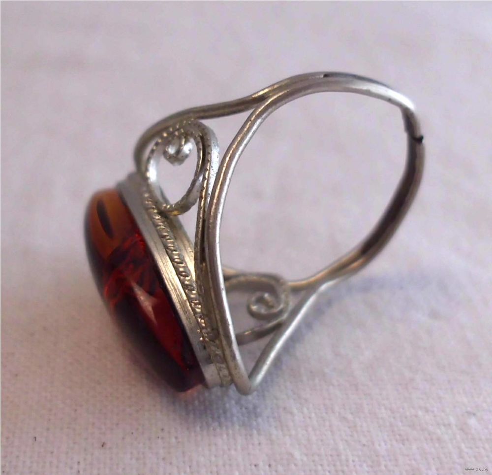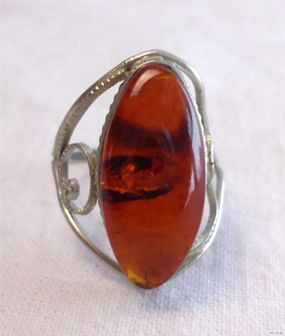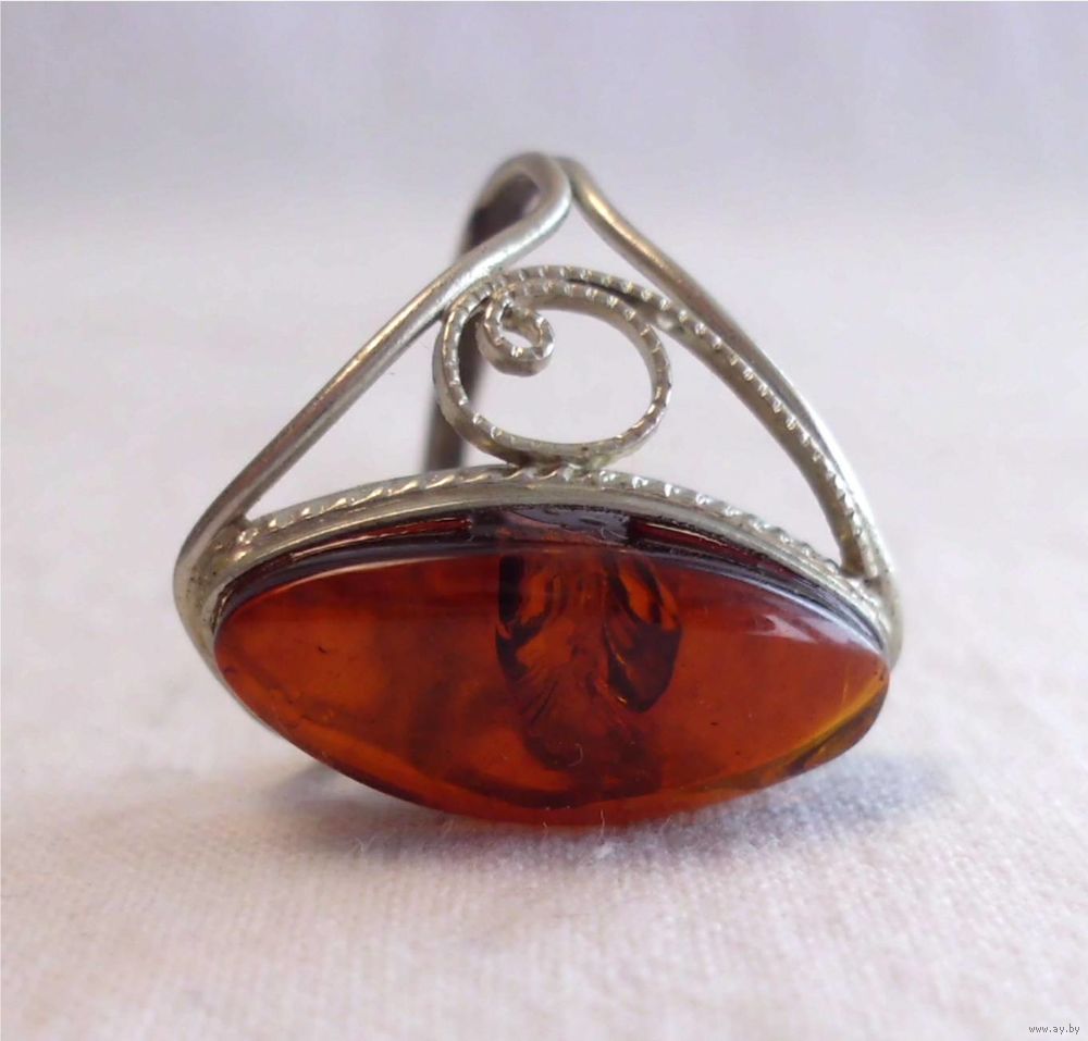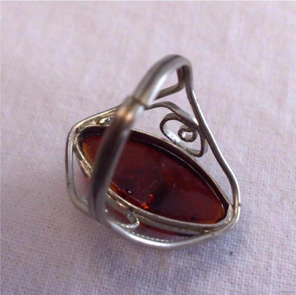 Кольцо со вставкой из натурального янтаря.