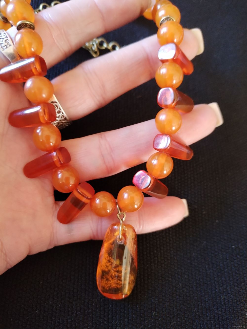 Украшение на шею натуральный советский янтарь. Длина 50см.За счёт цепочки можно носить как чокер под шею