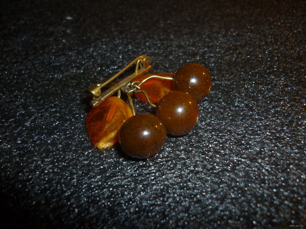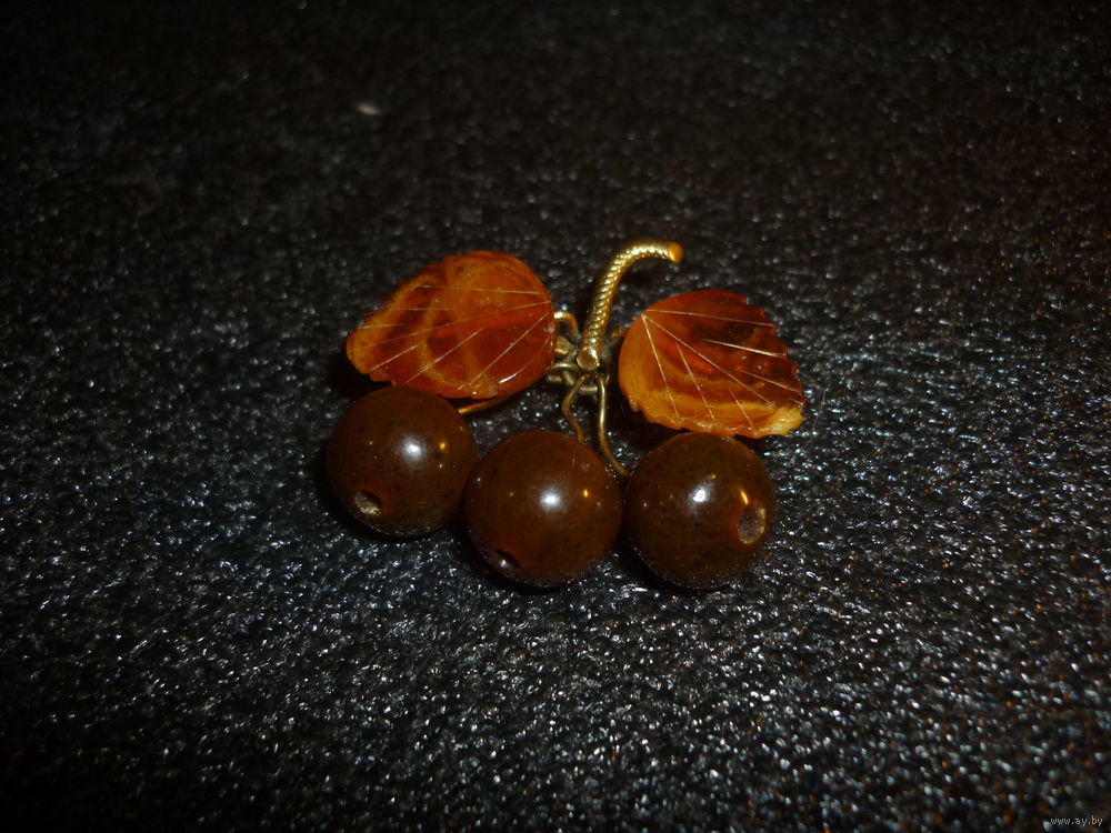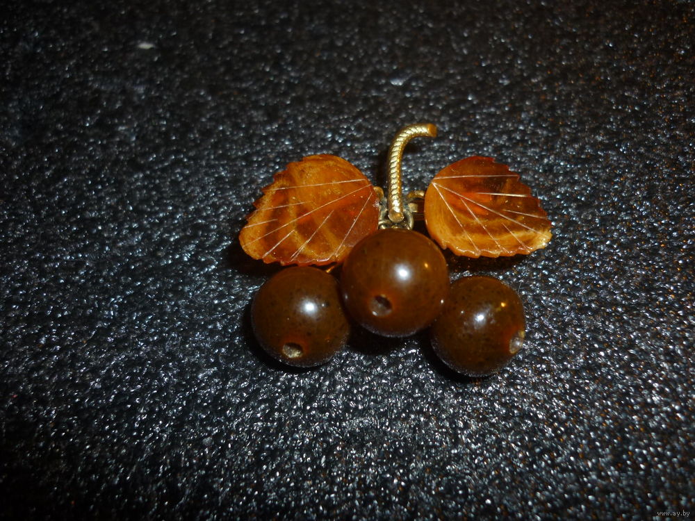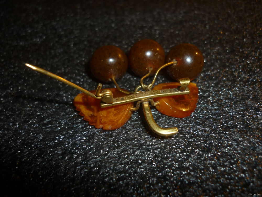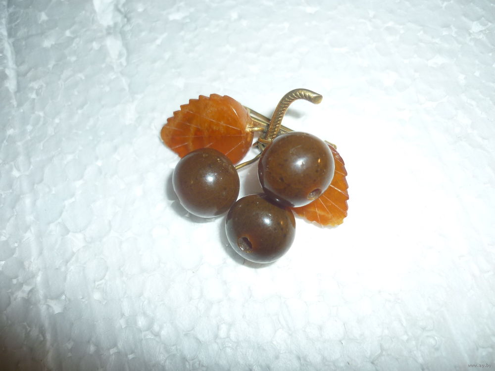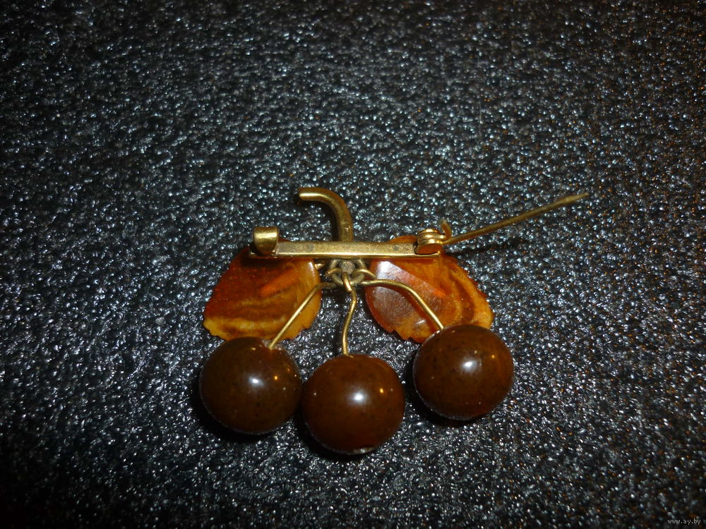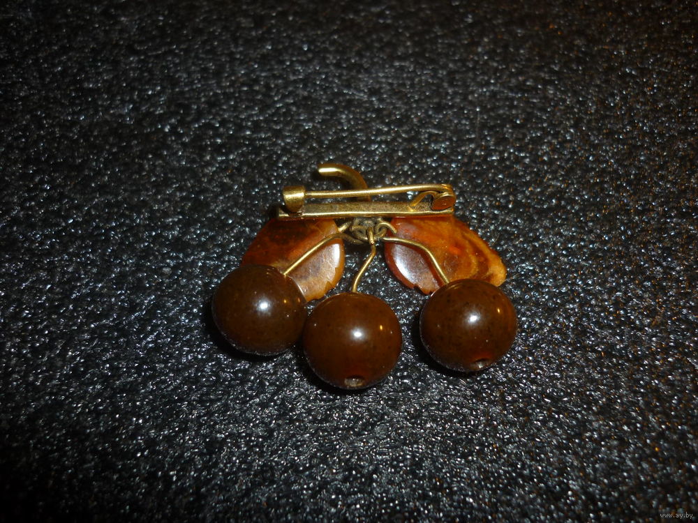 Янтарная Брошь Вишни Старая Германия (SBM) 20-40-ые